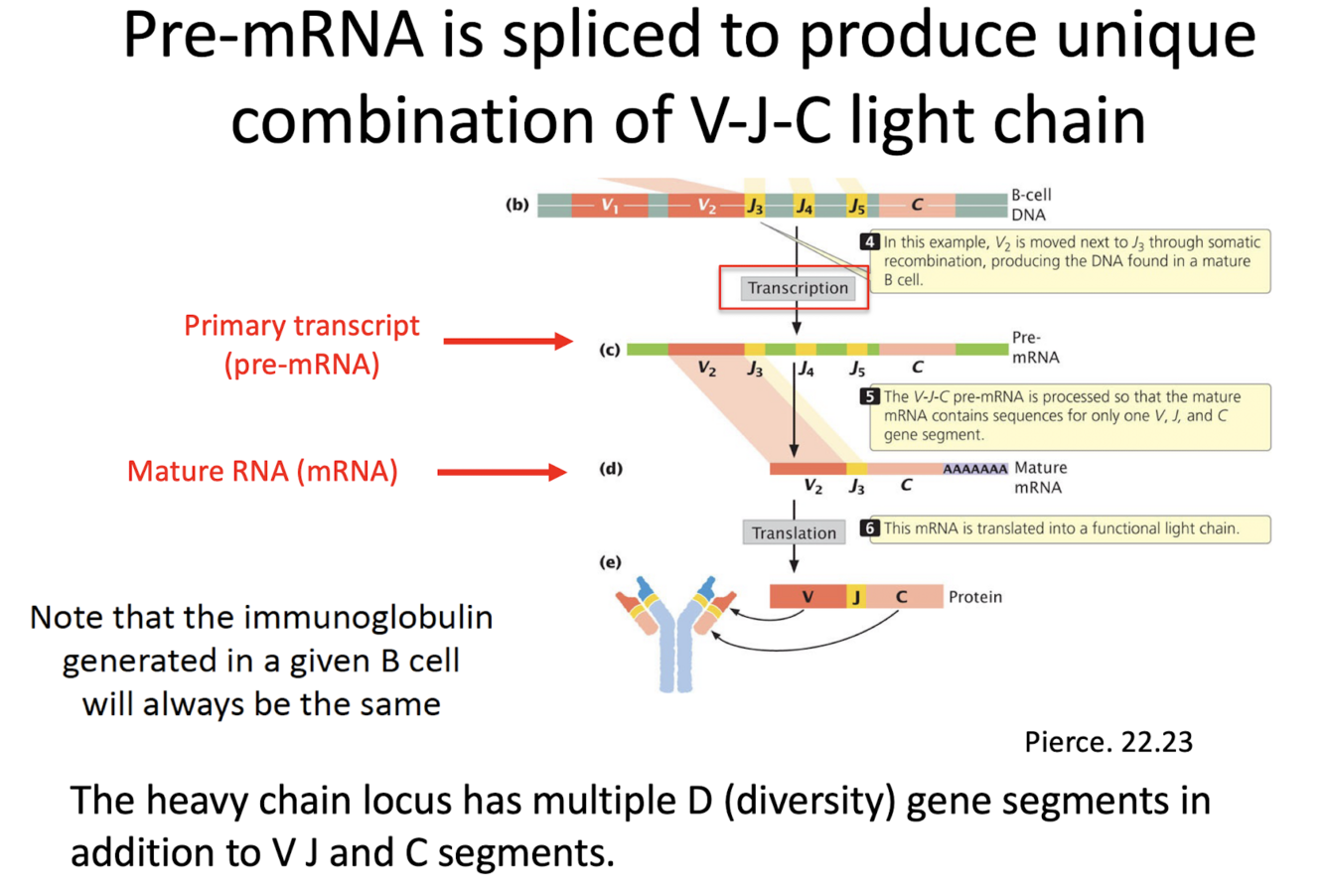 what happens to the pre-mRNA after somatic recombination?