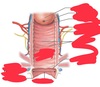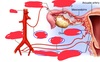 LH acts on the interstitial endocrine cells, stimulating the production of testosterone