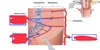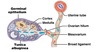 Hypothalamus releases GnRH which gets transported down to the anterior pituitary where it stimulates the release of LH and FSH