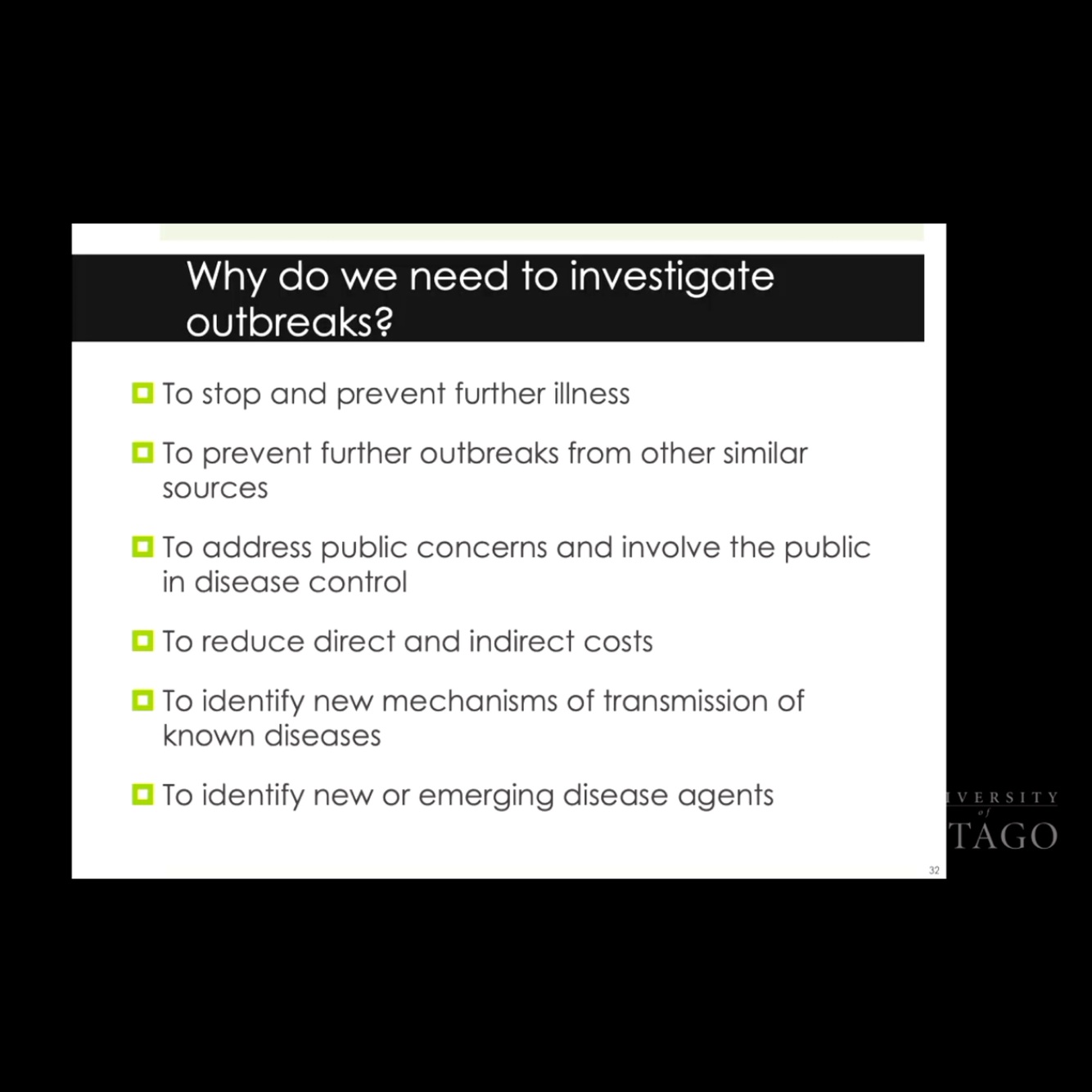 - could be localised increase in incidence or could arise in an area that had no cases for a long time