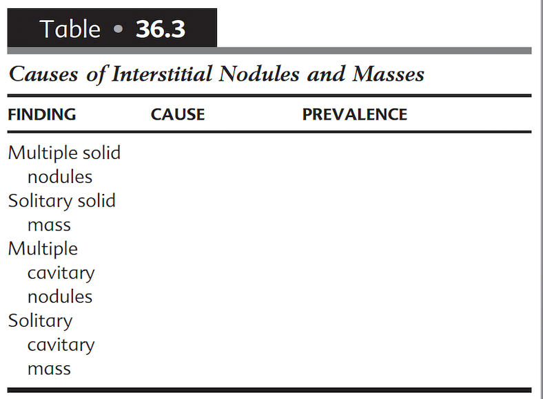 Causes of interstitial nodules and masses
