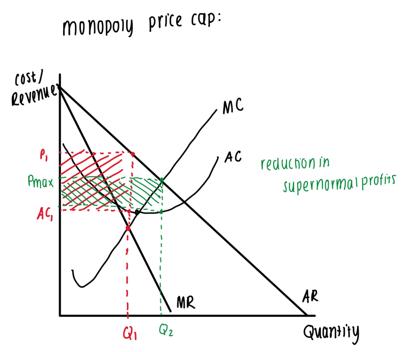 prevents monopolies from charging excessive prices to consumers, by putting price caps