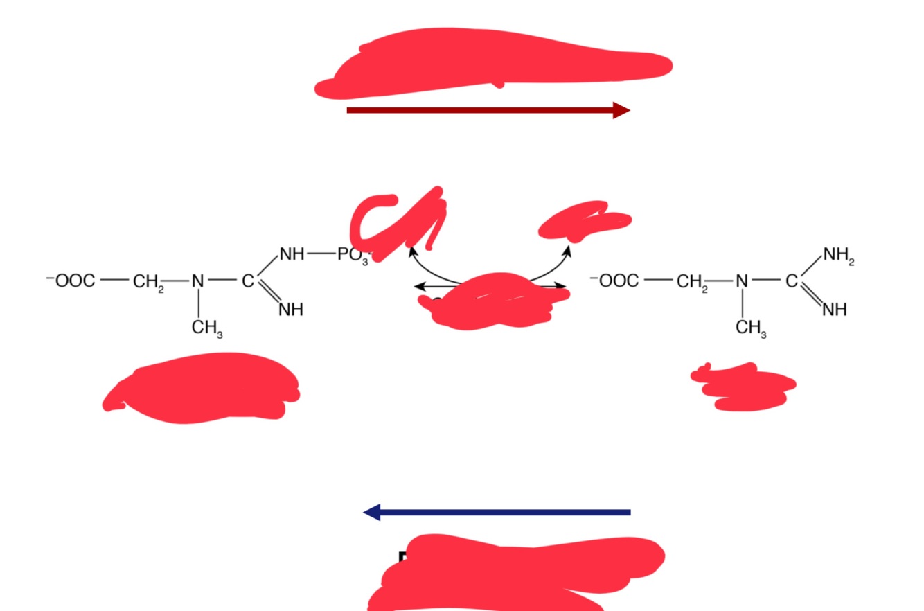 Made from Gly, Arg and Met (in liver but transferred to muscle)