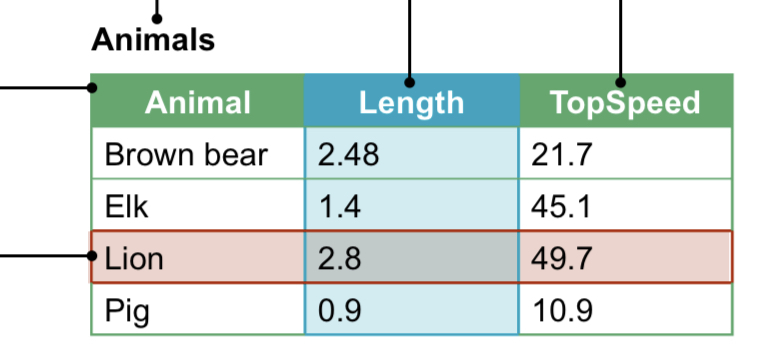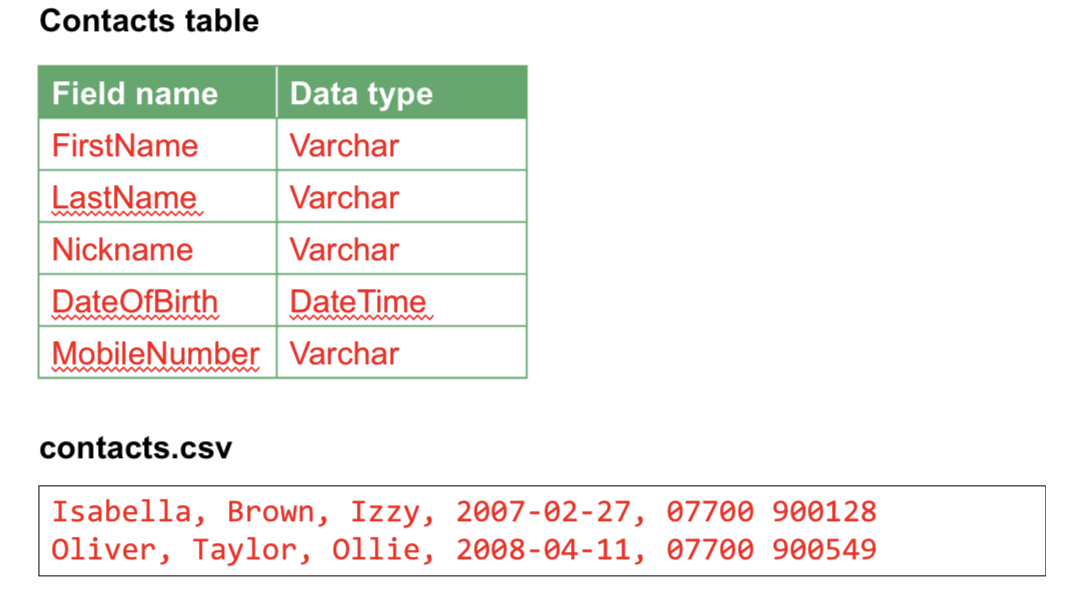 Field – one item of data, a column in a table