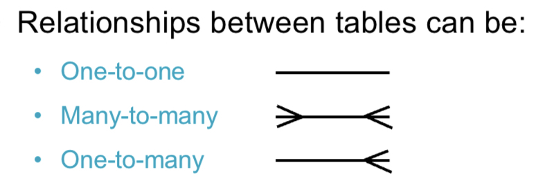 3 different relationships between tables