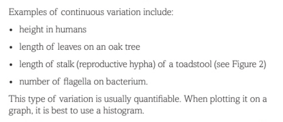 Give examples of continuous variation