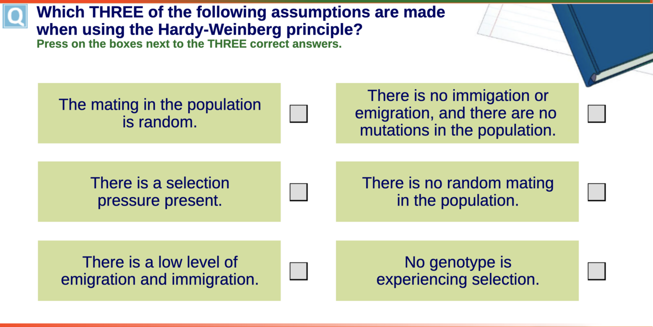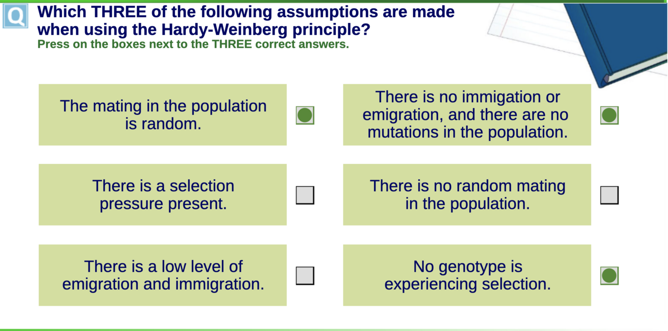 Identify changes in the allele frequency over time, if allele frequency has changed then selection has occurred. Also if you do the maths and either of the HW equations doesn’t add to 1 then this suggest evolution