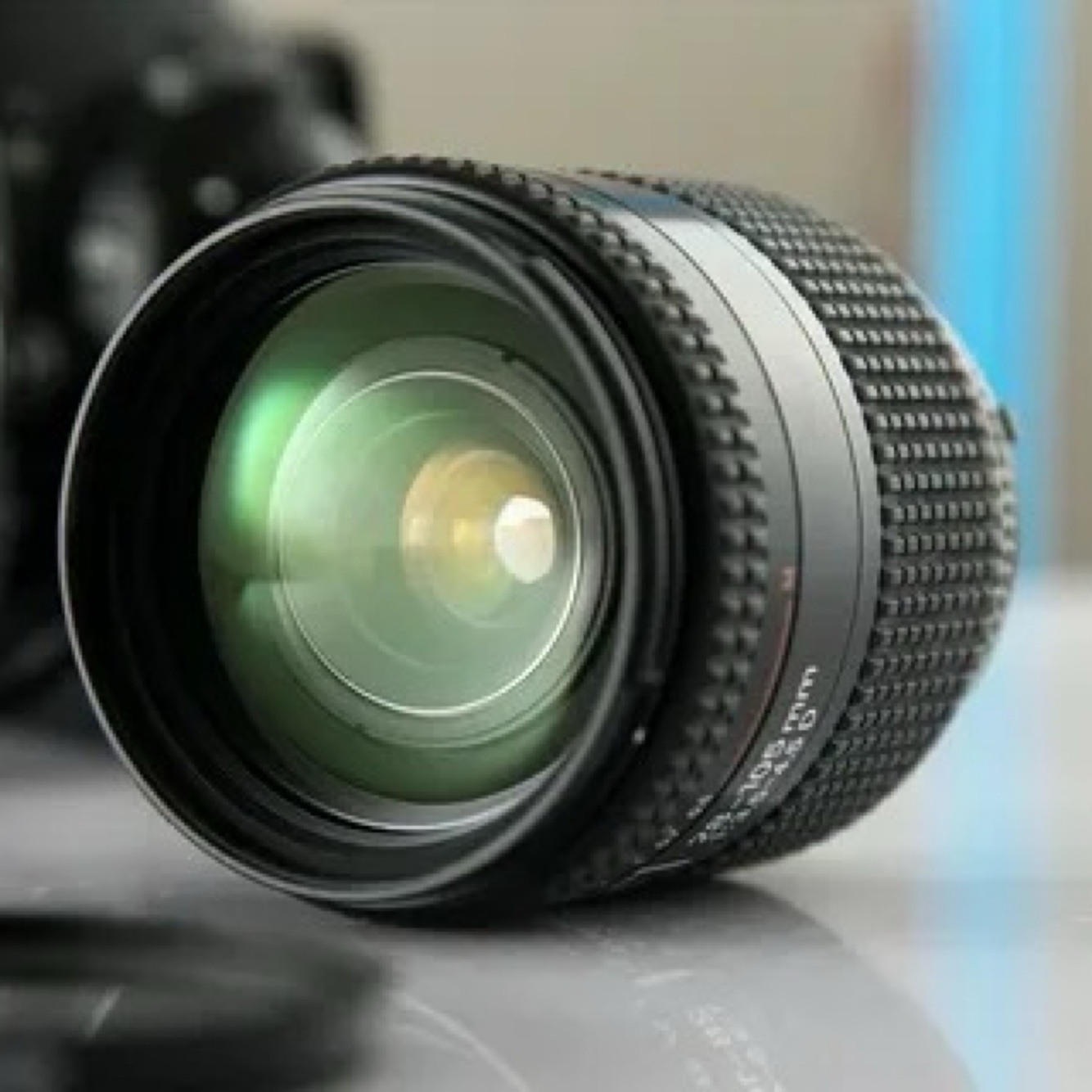 a curved piece of glass in cameras, glasses, and scientific equipment used for looking at things