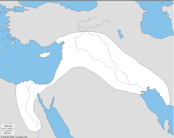 Label the following:1. Fertile Crescent 2. Mesopotamia 3. Tigris River4. Euphrates Rivers 5. Mediterranean Sea