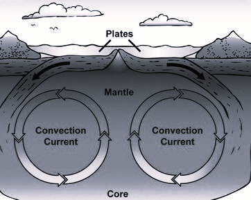Convection currents cause:* hot magma to rise* then cool and sink* making Earth’s tectonic plates move and create mountains, earthquakes,etc.