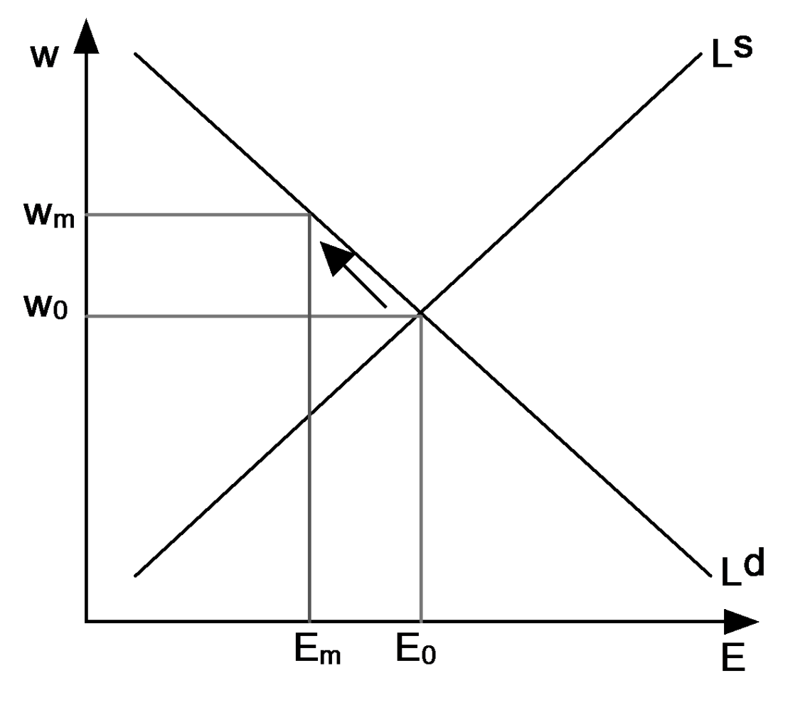 -> if you impose a minimum wage than the existing market, then that should decrease employment (baseline economic model)