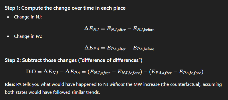 The problem: lots of other things change over time too (business cycles, inflation, policy changes…). So if employment falls after a MW increase, you don’t know if it was MW or or something else.