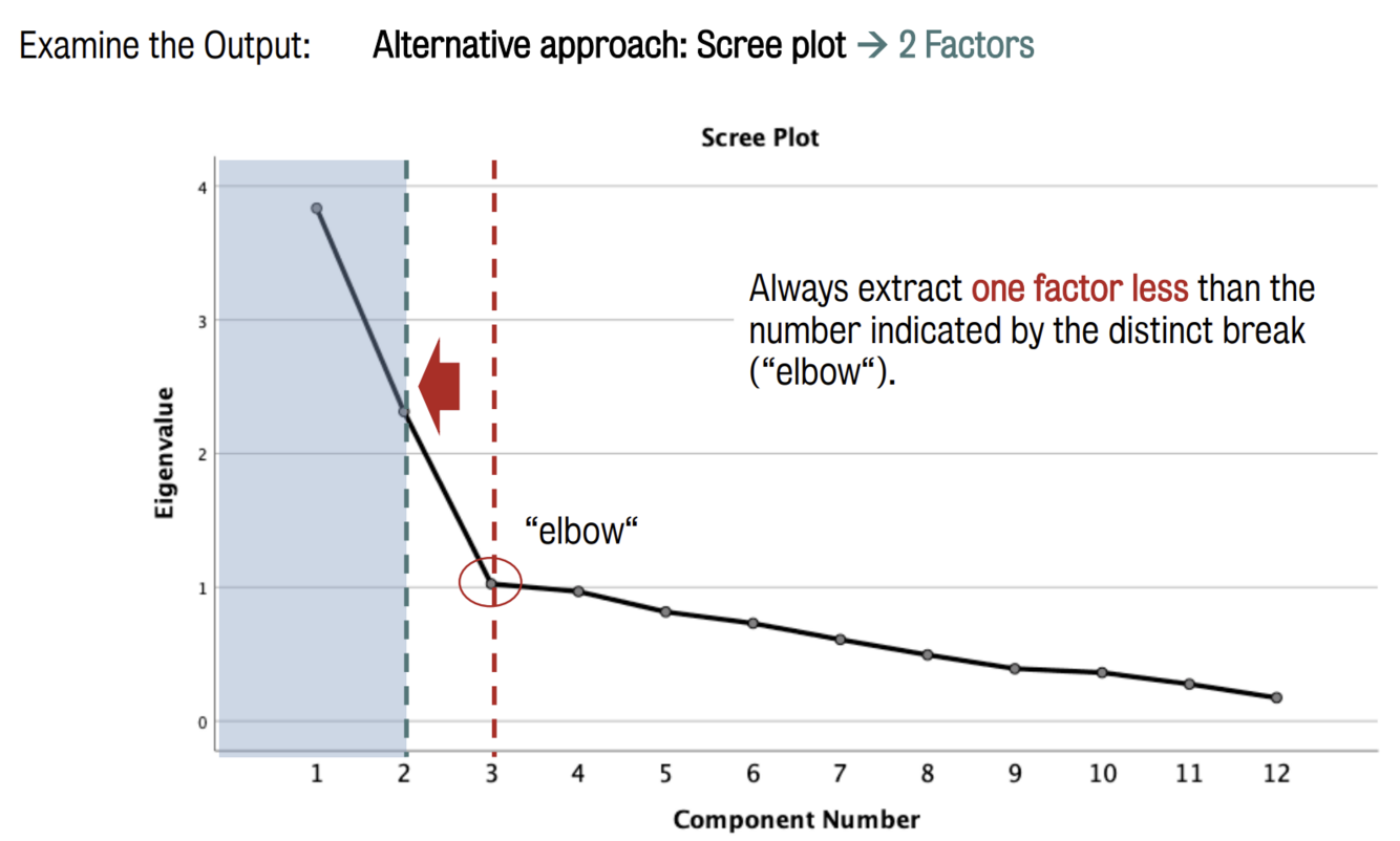 Plot of Eigenvalues against the number of factors in order of extraction. Select one factor LESS than the ELBOW.