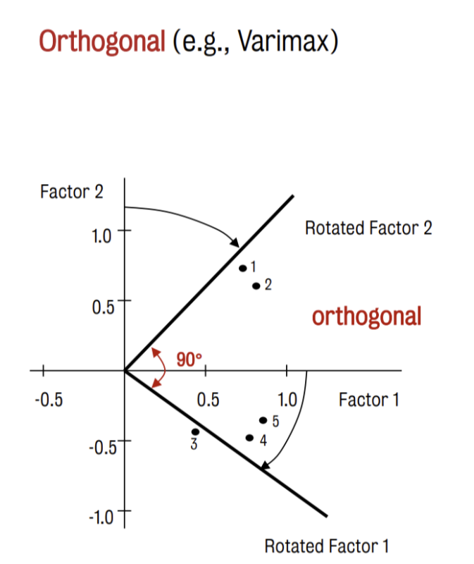 Before rotation: a variable loads .45 on Factor 1 and .40 on Factor 2 (ambiguous).