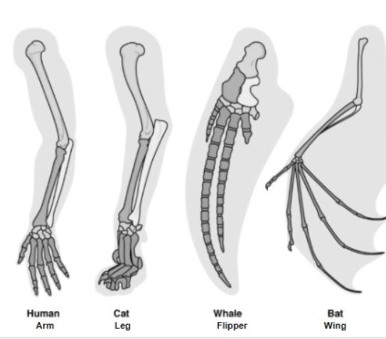 Homologous structures are body parts of very different organisms that look similar but have a different function.
