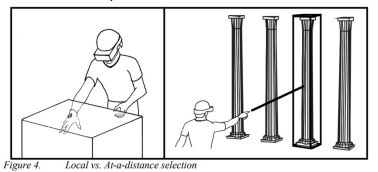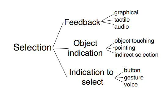 - Requires: Method to 1) identify object of interest (Pointing), 2) Signal or command to indicate act of selection (button press)