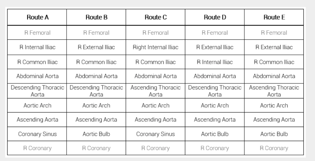 Which option gives the correct order of arterial structures that the stent will pass through during this procedure?