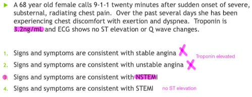 - no ___ elevation on ECG (may have depression or ___ wave inversion)