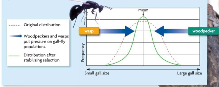 Individuals with alleles for characteristics (phenotype) towards the middle of the range are more likely to survive, reproduce and pass on their beneficial allele. This beneficial allele will increase in frequency in the gene pool, which has fewer alleles – so reduced genetic diversity. The mean value for the characteristic stays the same, while the range and standard deviations decrease. This type f selection occurs in a stable environment.