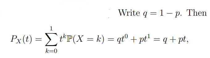What is the pgf for a Bernoulli distribution