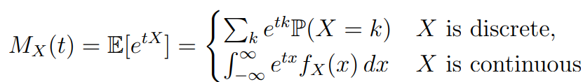 What is the mgf of discrete and continous random variables