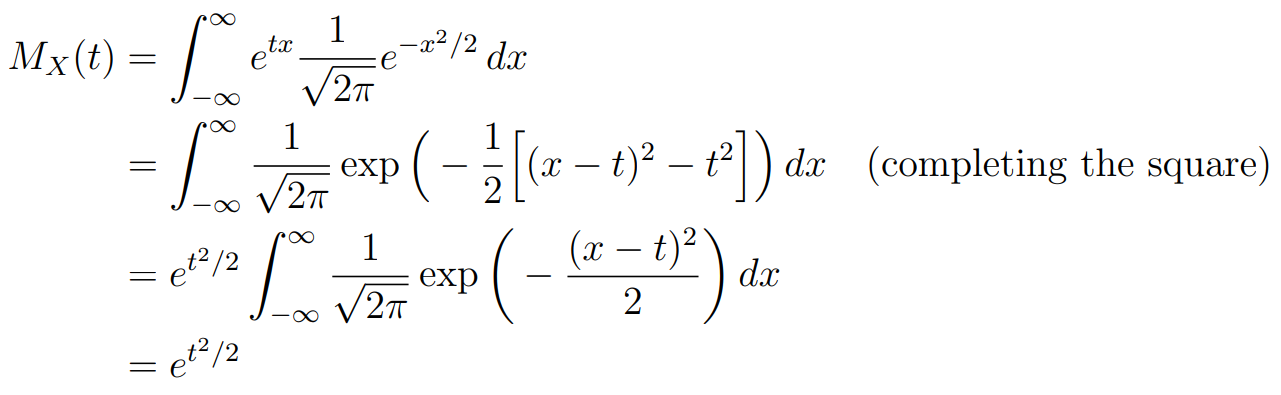 What is the mgf of the Standard Normal Distribution