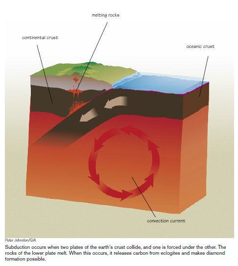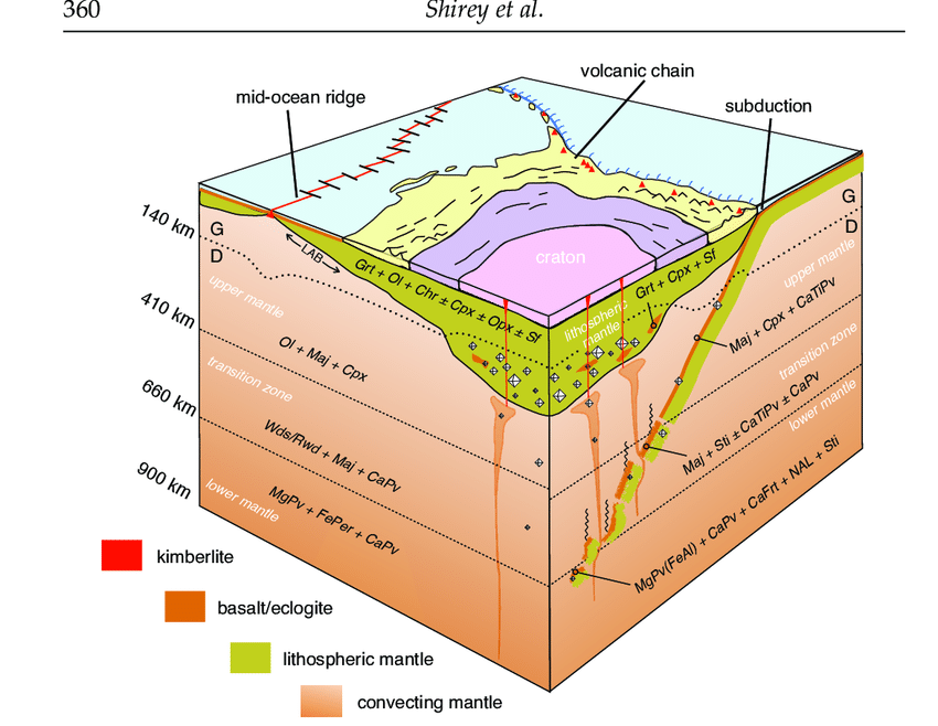 A geologic process that delivers materials (sometimes diamonds) to the surface.