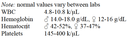 what are the minimum levels for hemoglobin and hematocrit for elective surgery?