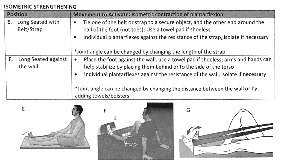 How is isometric strengthening accomplished for the Plantar Flexors?