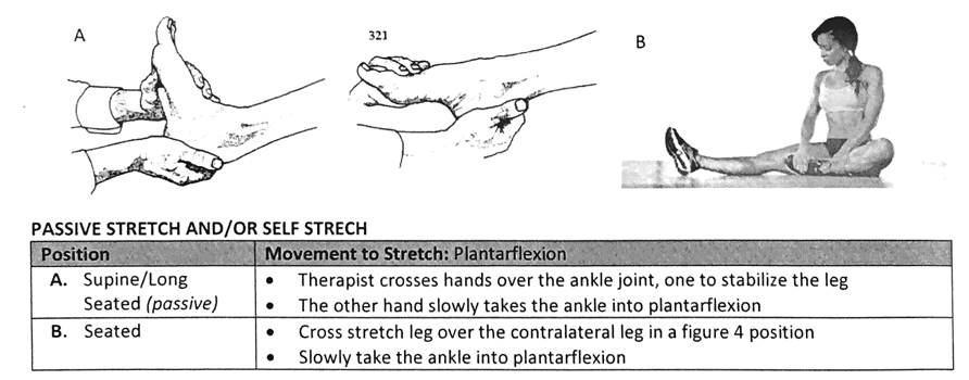 How is passive and/or self stretch accomplished for the Plantar Flexors?