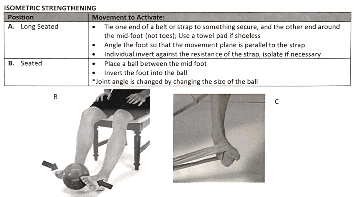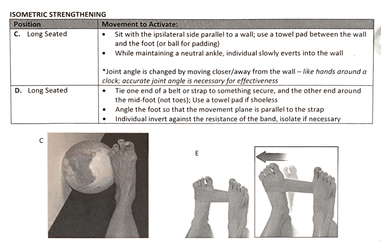 How is isometric strengthening accomplished for the Dorsiflexors and Inverters?
