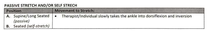 How is passive and/or self stretch accomplished for the Dorsiflexors and Inverters?