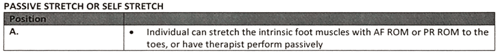 How is passive stretch and/or self stretch accomplished for the Intrinsic Foot Muscles?