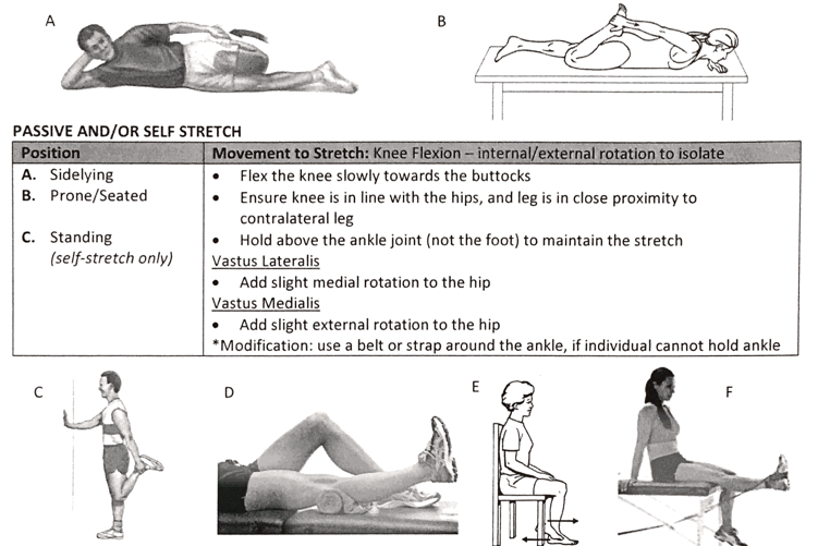 How is passive and/or self stretch accomplished for the Knee Extensors/Quads?