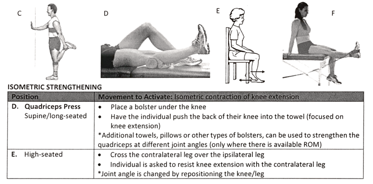 How is isometric strengthening accomplished for the Knee Extensors/Quads?