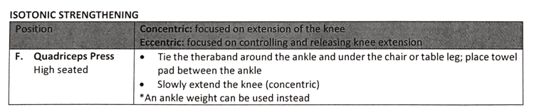How is isotonic strengthening accomplished for the Knee Extensors/Quads?