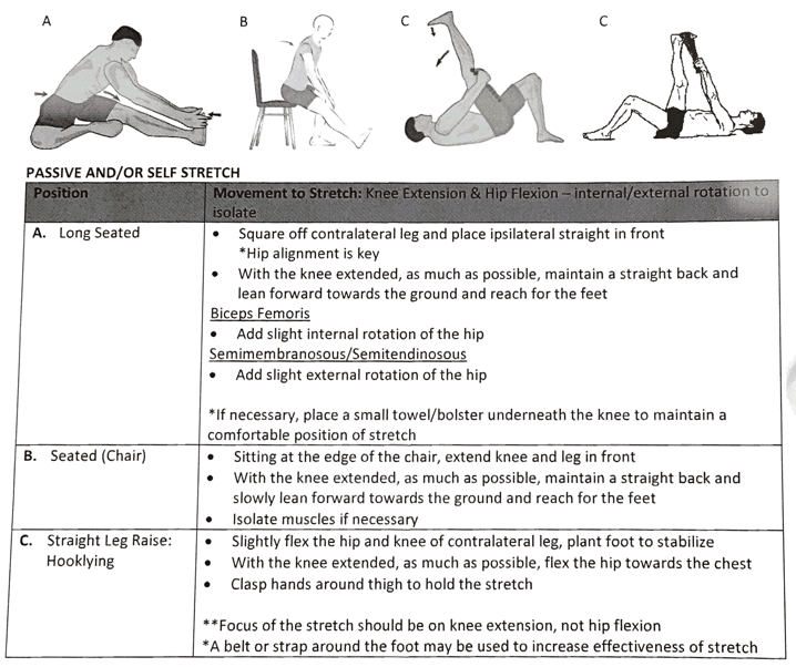 How is passive and/or self stretch accomplished for the Knee Flexors/Hamstrings?