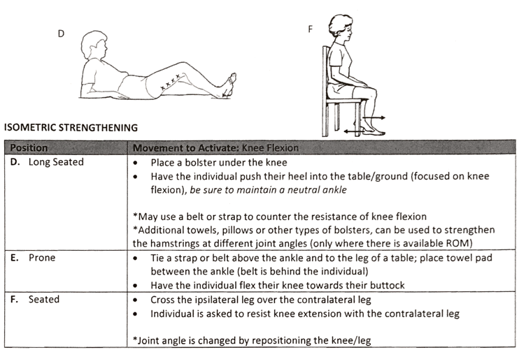 How is Isometric strengthening accomplished for the Knee Flexors/Hamstrings?