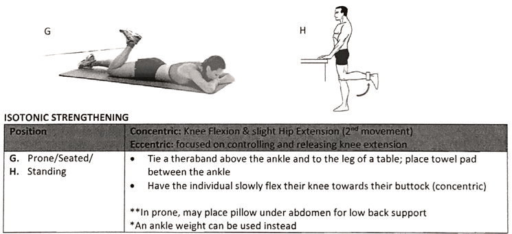 How is Isotonic strengthening accomplished for the Knee Flexors/Hamstrings?