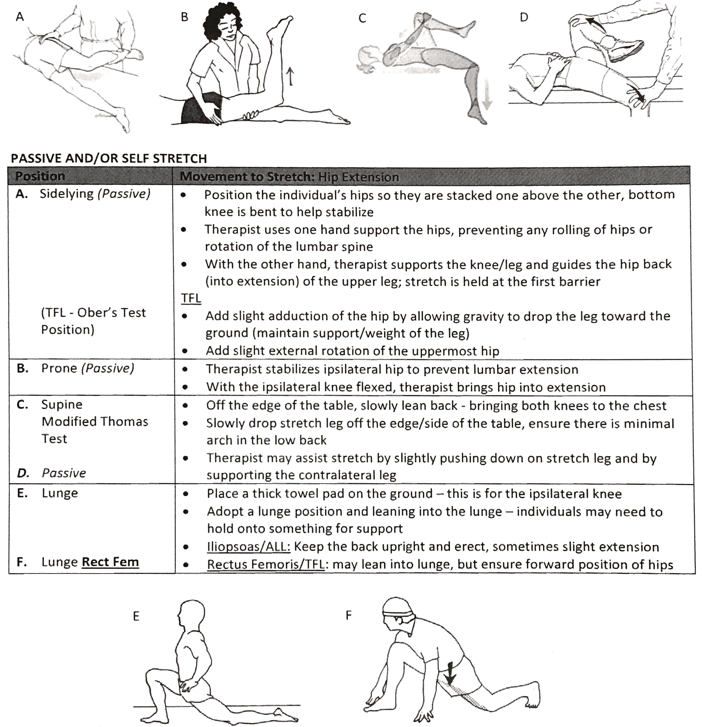 How is passive and/or self stretching accomplished for the Hip Flexors?