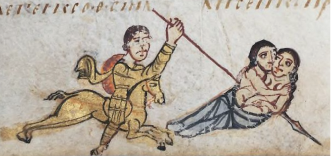 Pheneas killing Zimri and Cozbi, 9th century manuscript