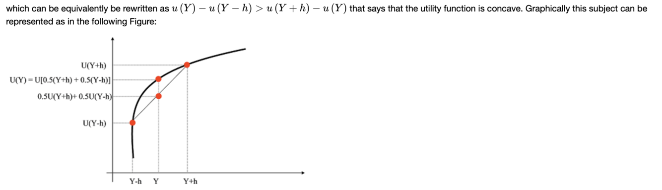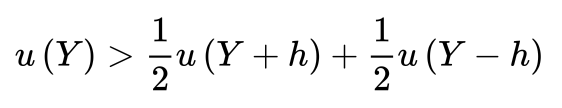 L’utilità della ricchezza iniziale u(Y) è maggiore del valore atteso dell’utilità dei due payoff, siccome il valore atteso dell’utilità dei payoff è la probabilità di ricevere l’utilità del primo payoff + la probabilità di ricevere l’utilià del secondo payoff