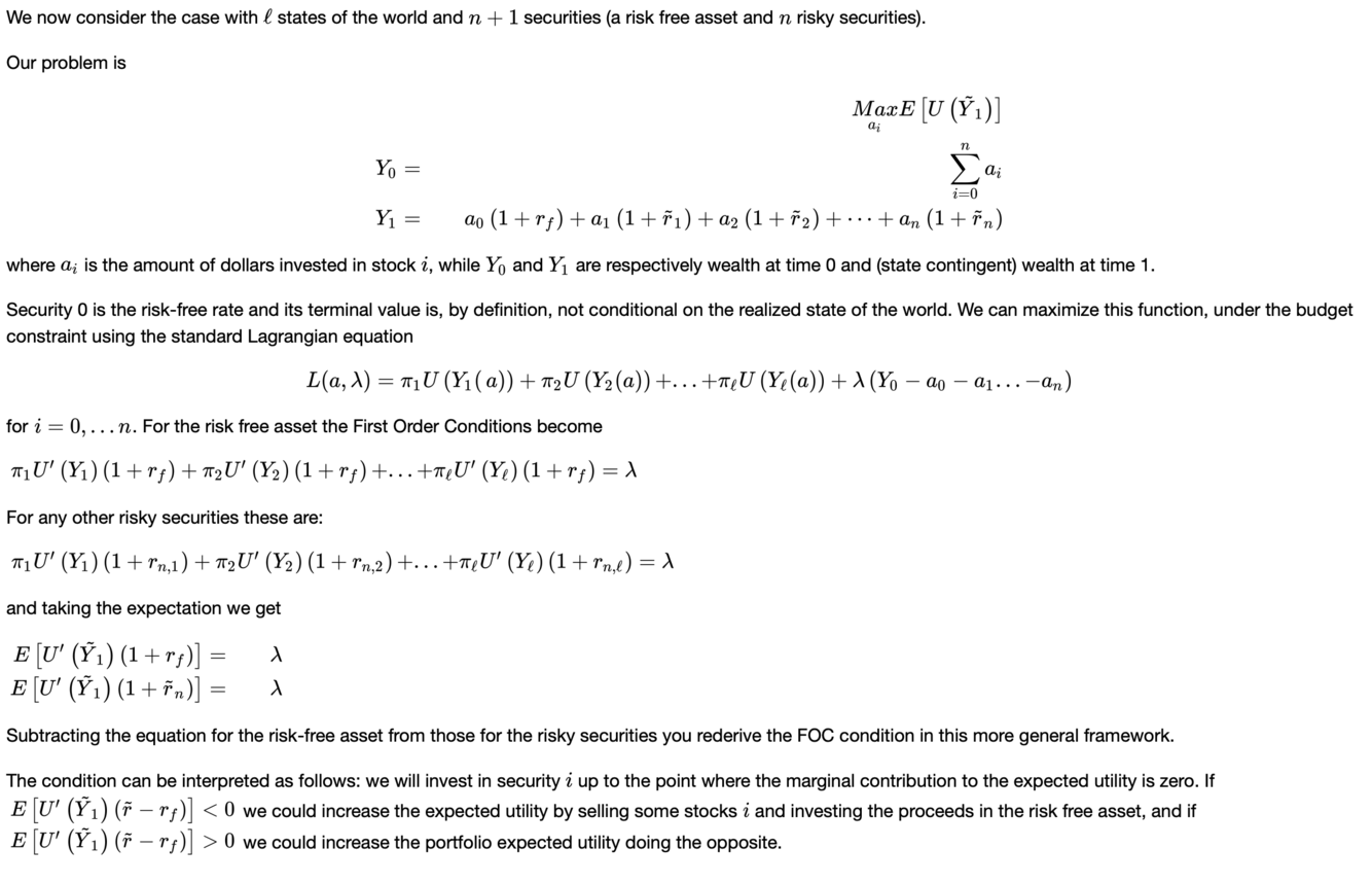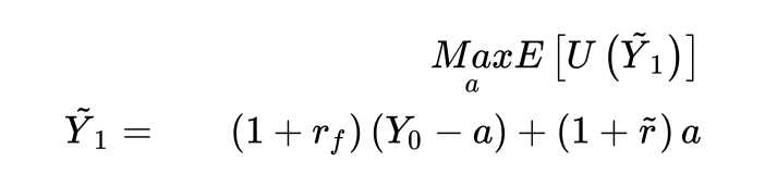 La logica è massimizzare l’expected value dell’utilità della ricchezza finale Y1 (che è una variabile aleatoria dipendente da stato e combinazione dei titoli).