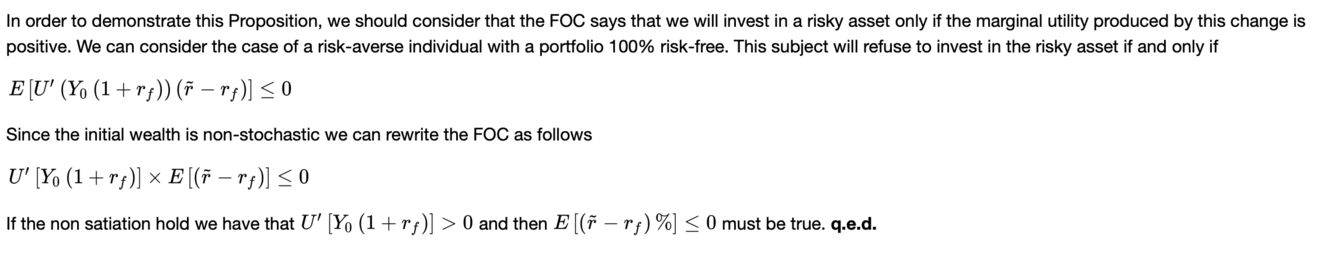 E(r tilde -rf) > 0 se e solo se ai > 0.
