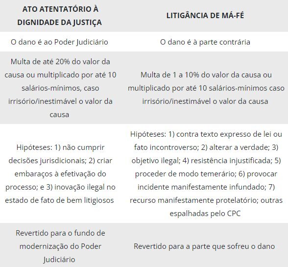 Diferença entre ato atentatório à dignidade da justiça e litigância de má-fé