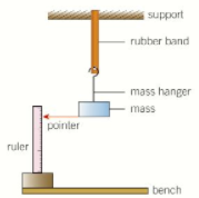 start with the shown apparatus, use a stiff wire wrapped around the bottom of the mass to provide a pointer measure the unstretched length of the band and then measure the length of the band with each mass you add on find the extension by subtracting old length from new length proceed to plot an extension against force graph