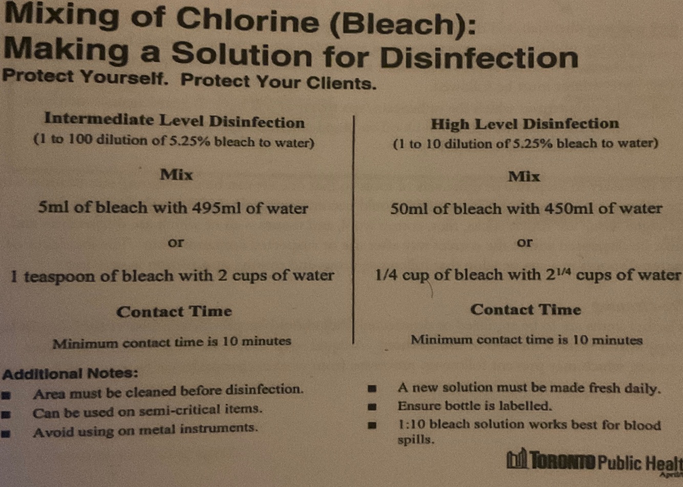 —follow the manufacturers instructions regarding the dilution of disinfectants and antiseptics