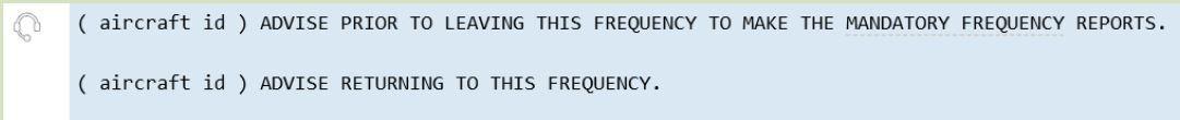 If the pilot needs to leave your frequency to make required Mandatory Frequency Area Reports, advise the pilot to report leaving and returning to ATC frequency.