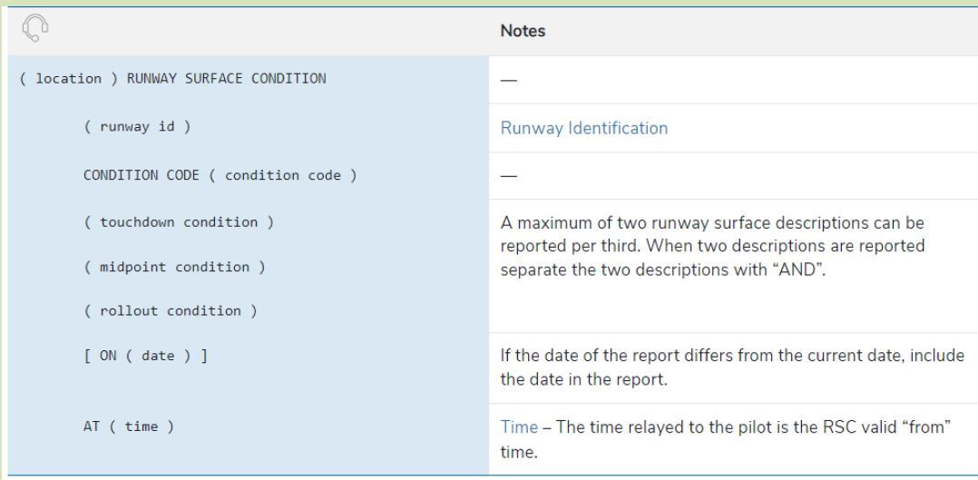 RUNWAY SURFACE CONDITION REPORT (RSC report)