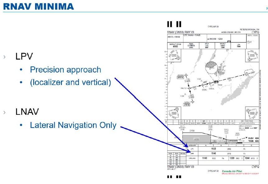 In Canada, RNAV (GNSS) approach charts may depict up to four sets of minima: